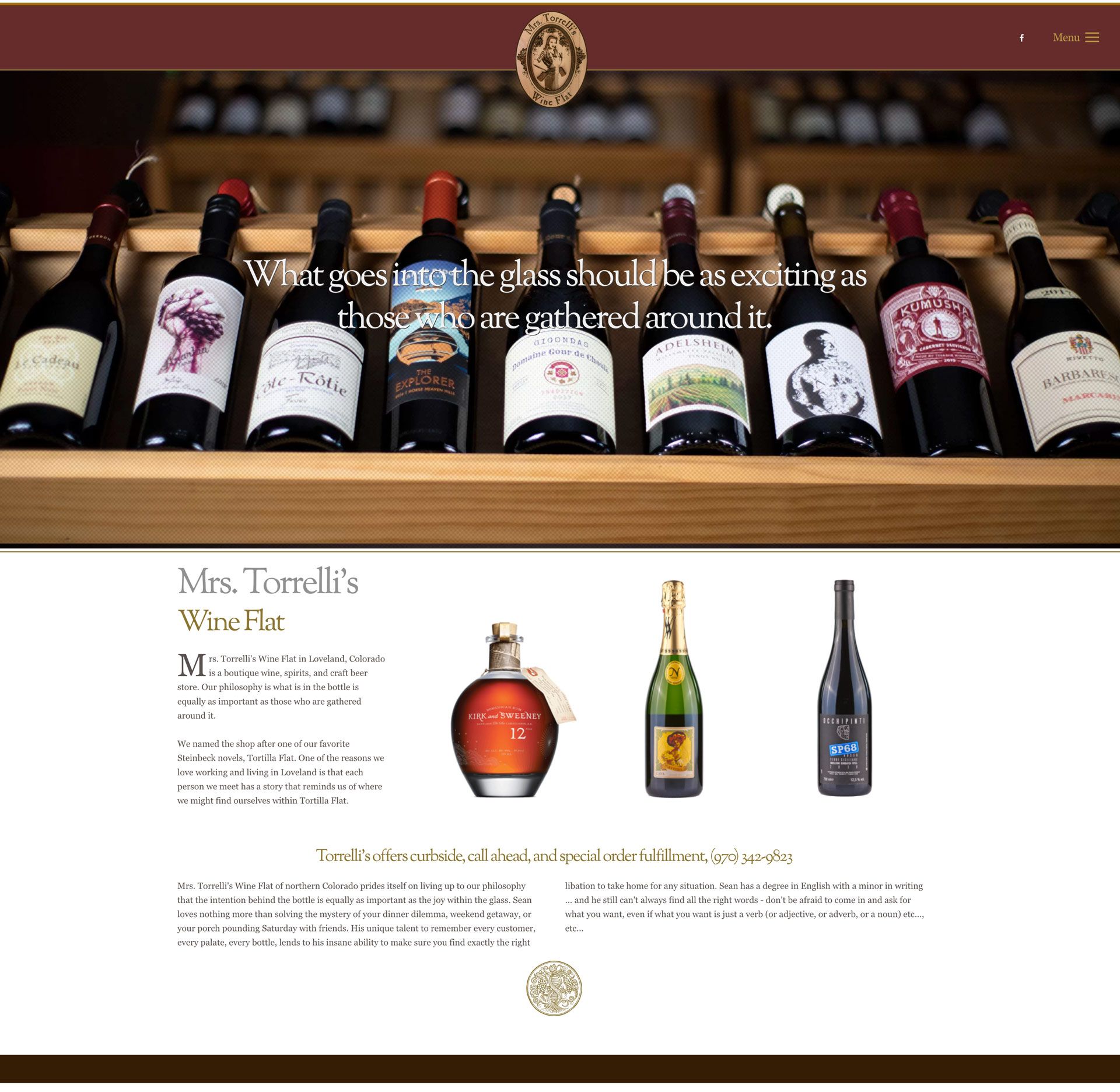 Mrs. Torrelli's Wine Flat is a unique wine, spirits, and beer shop selling beverages not often found in most wine or liquor stores. Full Circle Creative was hired to redesign their website. We suggested that the store show off its unique boutique flavor with great photography that could be used on the website, social media, and advertising.