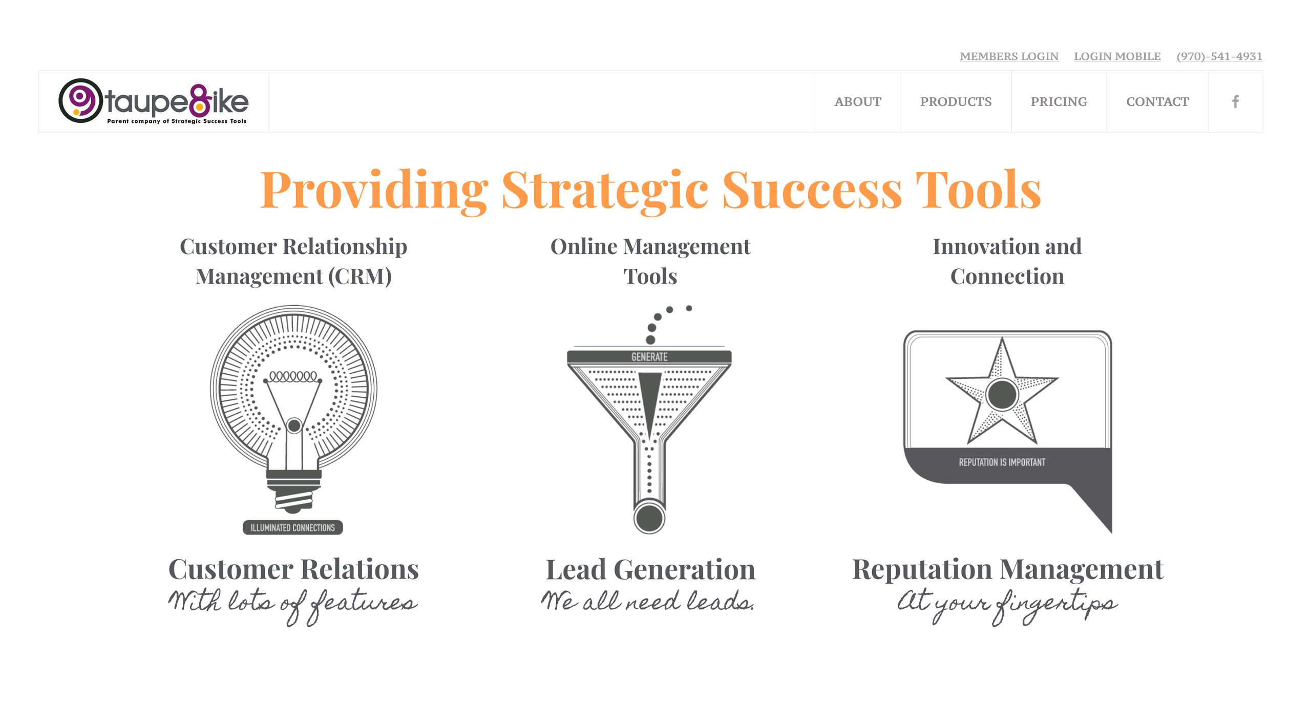 Taupe & Ike sells a software suite for small businesses including tools for customer relationship management (CRM), lead generation, reputation management, and more—all in one place.