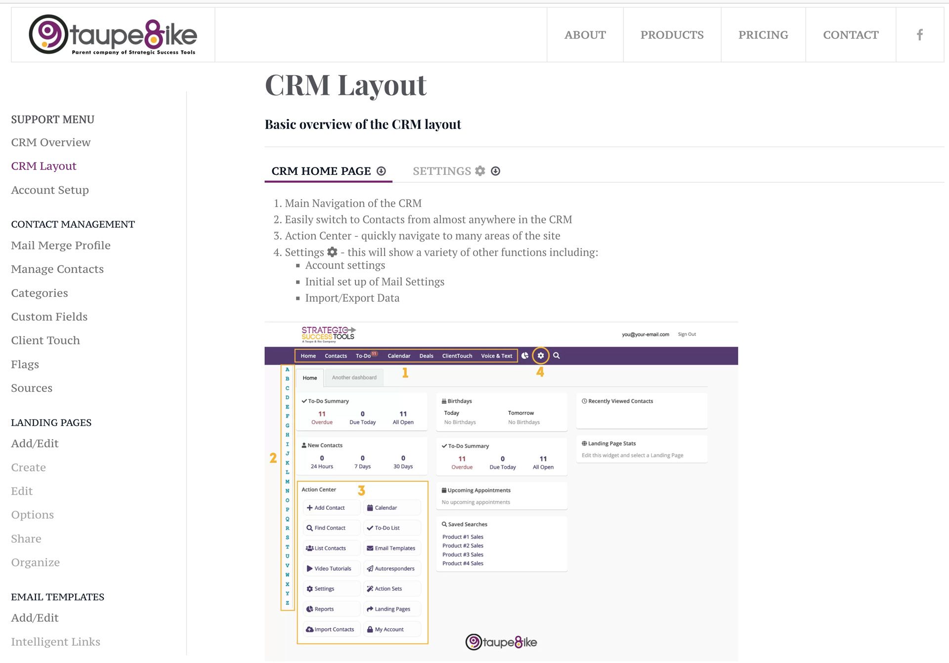 Full Circle Creative also created a knowledge base support area. So often we have found that support areas can be unintuitive, hard to follow, hard to find what one is looking for. We kept it simple and designed it to essentially be a step-by-step tutorial using the imagery from the user interface of the CRM system.